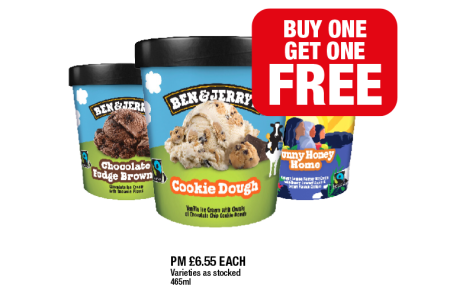 Ben & Jerry's Cookie Dough, Chocolate Fudge Brownie, Sunny Honey Home - Now Only Buy 1 Get 1 FREE at Family Shopper