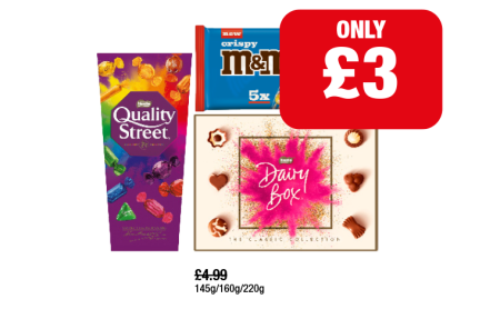 Quality Street, Crispy M&M's Bar, Nestle Dairy Box - Now Only £3 at Family Shopper