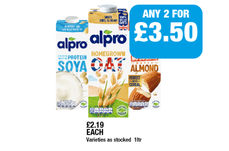 Alpro Protein Soya, Oat, No Sugars Almond - Any 2 for £3.50 at Family Shopper