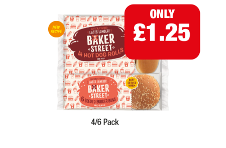 Baker Street Hot Dog Rolls, Seeded Burger Buns - Now Only £1.25 at Family Shopper