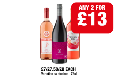 Barefoot Rosé, McGuigan Shiraz, Blossom Hill - Any 2 for £13 at Family Shopper
