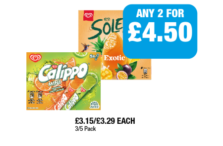 Calippo Mini, Solero Exotic - Any 2 for £4.50 at Family Shopper