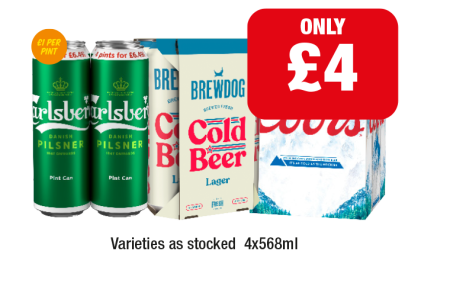 Carlsberg, Brewdog Cold Beer, Coors - Now Only £4 at Family Shopper