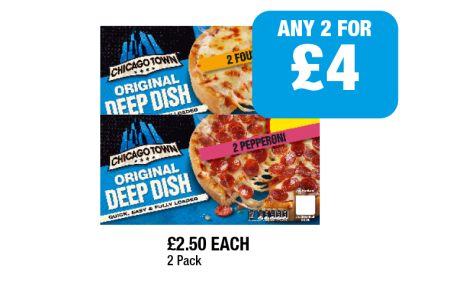 Chicago Town Deep Dish Four Cheese, Pepperoni - Any 2 for £4 at Family Shopper
