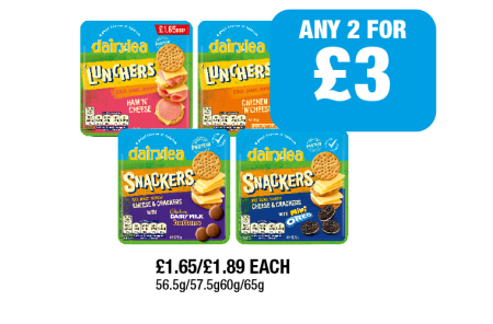 Dairylea Lunchers Chicken 'N' Cheese, Ham 'N' Cheese, Cheese & Crackers Buttons, Mini Oreos - Any 2 for £3 at Family Shopper