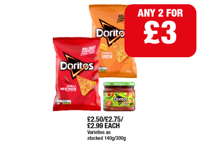 Doritos Chilli Heatwave, Tangy Cheese, Mild Salsa - Any 2 for £3 at Family Shopper