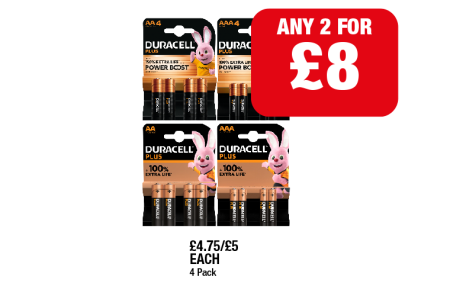 Duracell Batteries - Any 2 for £8 at Family Shopper