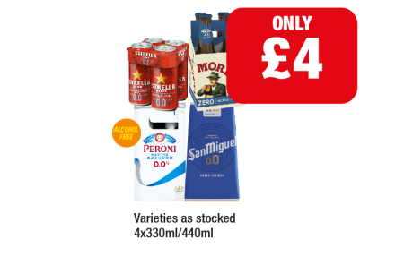 Estrella 0.0, Moretti Zero, Poretti 0.0, San Miguel 0.0 - Now Only £4 at Family Shopper