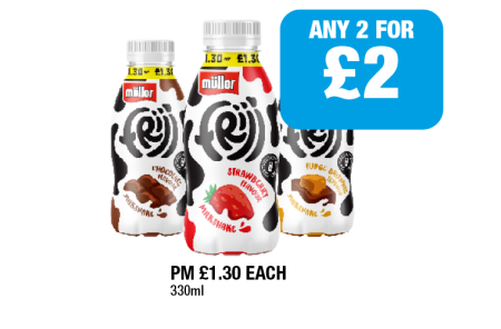 Frijj Chocolate, Strawberry, Fudge Brownie - Any 2 for £2 at Family Shopper