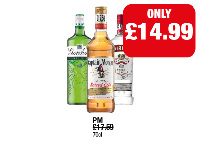 Gordon's, Captain Morgan, Smirnoff - Now Only £14.99 at Family Shopper