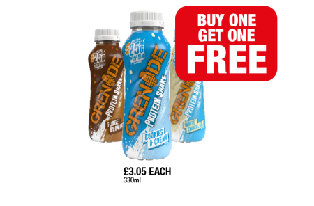 Grenade Protein Shake Fudge Brownie, Cookies & Cream, White Chocolate - Buy 1 Get 1 FREE at Family Shopper
