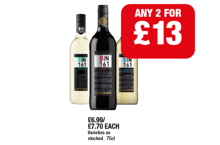 Hardy's Bin 161 Pinot Grigio, Shiraz, Sauvignon Blanc - Any 2 for £13 at Family Shopper