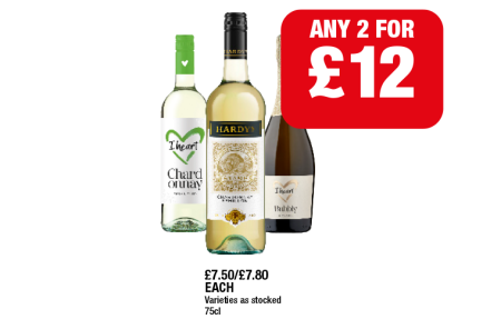 I Heart Wines Bubbly, Chardonnay, Hardy's - Any 2 for £12 at Family Shopper