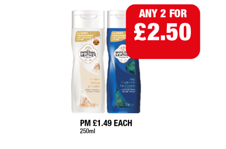 Imperial Leather Body Wash Cotton Flower & Vanilla, Blue Cypress & Eucalyptus - Any 2 for £2.50 at Family Shopper