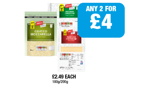 Jack's Grated Mozzarella, Medium Cheddar, Mature Cheddar - Any 2 for £4 at Family Shopper