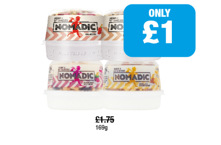 Nomadic Strawberry, Double Choc, Blackcurrant & Blueberry, Chocolate & Honeycomb - Now Only £1 at Family Shopper