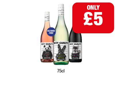 Not Guilty Zero Alcohol Rosé, Pinot Grigio, Red Blend - Now Only £5 at Family Shopper