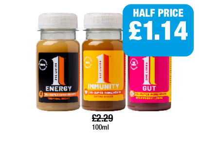 One Living Energy Tropical Boost, Citrus Ginger, Strawberry Lemon - Now Only Half Price £1.14 at Family Shopper