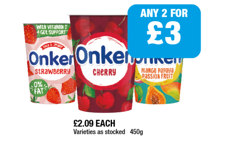Onken Strawberry, Cherry, Mango Papaya Passion Fruit - Any 2 for £3 at Family Shopper