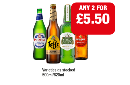 Peroni, Leffe, Stella Artois Unfiltered, Estrella - Any 2 for £5.50 at Family Shopper