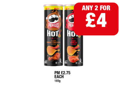 Pringles Hot Fried Chicken, Sweet Chilli - Any 2 for £4 at Family Shopper