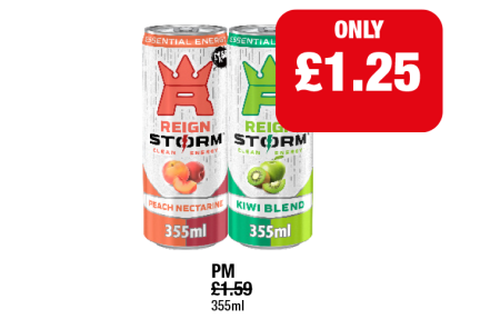 Reign Storm Peach Nectarine, Kiwi Blend - Now Only £1.25 at Family Shopper