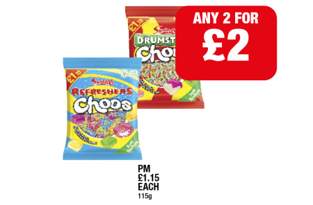 Swizzels Refreshers Choos, Drumstick Choos - Any 2 for £2 at Family Shopper