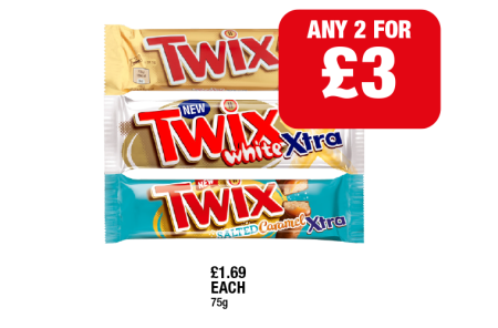 Twix Xtra, Salted Caramel, White - Any 2 for £3 at Family Shopper