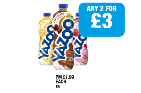Yazoo Chocolate, Banana, Strawberry - Any 2 for £3 at Family Shopper
